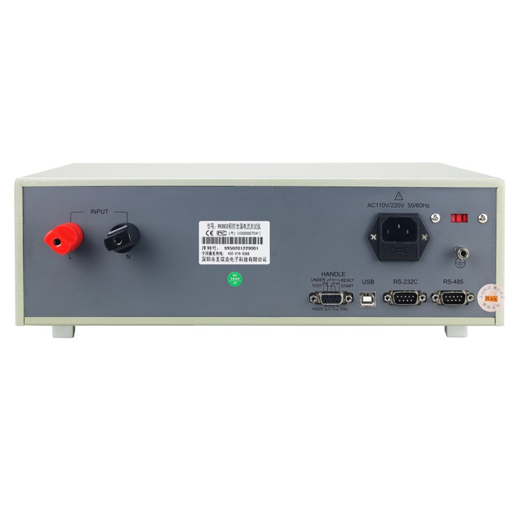 RK9950系列程控泄漏電流測試儀為5寸TFT液晶屏顯示,測試儀采用32位高速MCU和大規模數字電路設計,內置GB9706.1-2007(IEC60601-1:1998)人體阻抗模擬網絡,測試儀具備不合格判別功能、聲光報警功能和測試時間自動控制功能,可滿足生產線或品質檢驗使用需要。